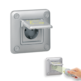 • Ausführung: 1-phasig, Schutzart IP44 (IP55 bei geschlossenem Deckel). Schlagefestigkeit IK08 (Aufputz Version, Kunststoff) und IK10 ( Unterputz Version, Metall-Druckguss)